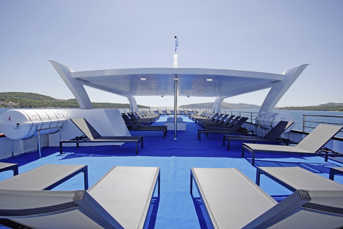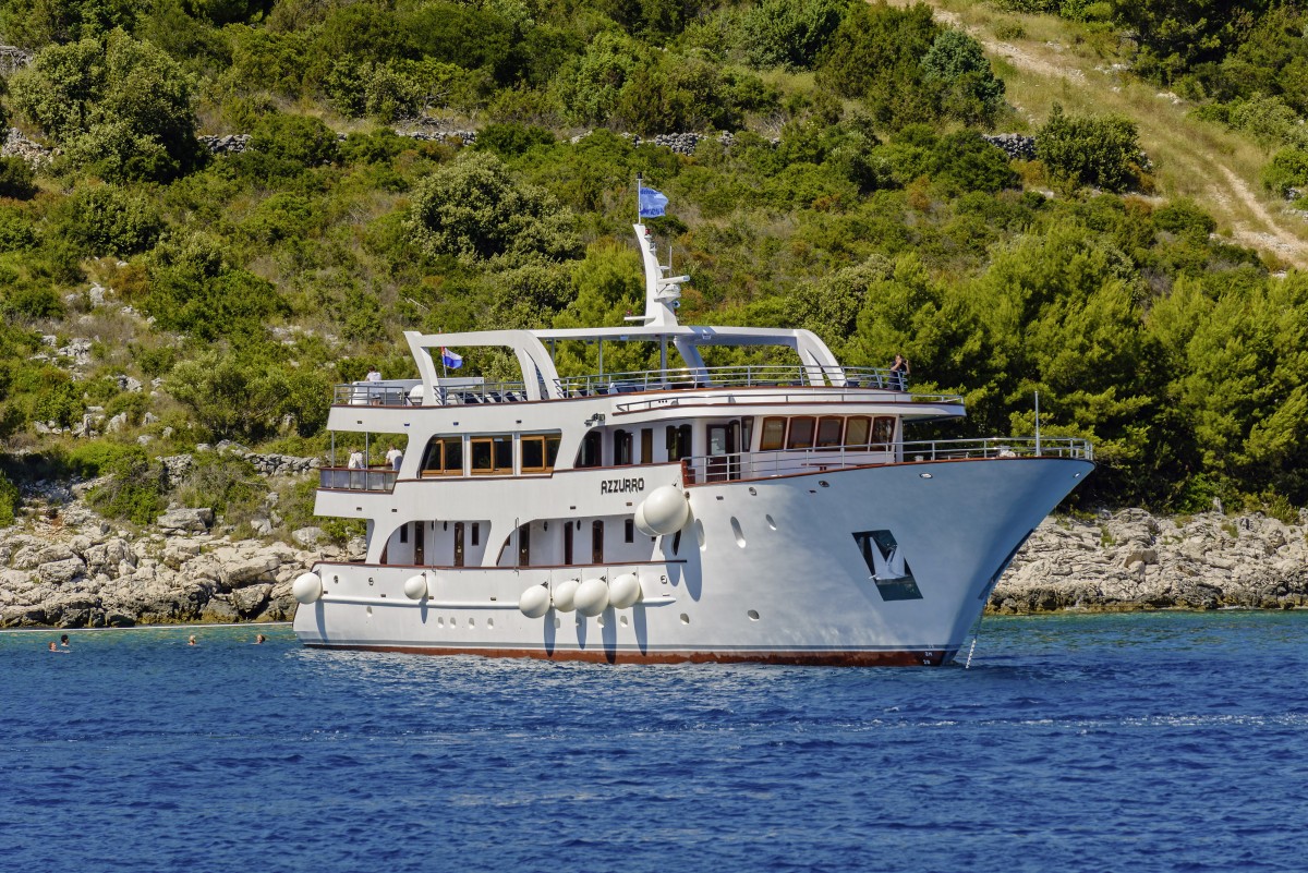 Vor nunmehr 44 Jahren, im Jahre 1978, begann der junge Arsen zusammen mit seinem Vater Tomislav, Urlaubern mit ihrem kleinen Holzschiff Orkan die Schönheiten der dalmatinischen Inselwelt zu zeigen. Während sich Tomislav erst vor wenigen Jahren in den wohlverdienten Ruhestand zurückgezogen hat, steuern Arsen und seine drei Söhne Karlo, Paško und Roko – sie haben alle längst das Kapitänspatent – die drei Schiffe der Familie. Nachdem im Juli 2015 die MY Mystic vom Stapel gelaufen ist, konnten wir im August 2018 die MY Relax in unserer Flotte begrüßen. Die Relax sollte jedoch nicht der letzte Neubau der Familie Ercegović sein, denn schon im Juni 2019 erhielt sie ein baugleiches Schwesterschiff – die „MY Azzurro“. Wie bereits die MY Relax, verfügt auch die MY Azzurro über 19 komfortable Kabinen, einen großzügigen Salon mit Bar und Sitzecke auf dem Oberdeck, gemütliche, überdachte Sitzgruppen im Loungebereich hinter dem Salon und ganz oben ein riesiges Sonnendeck. Während Karlo am Steuer der Relax und Paško am Steuer der Azzurro stehen, werden Arsen und Roko ihrer Mystic treu bleiben.